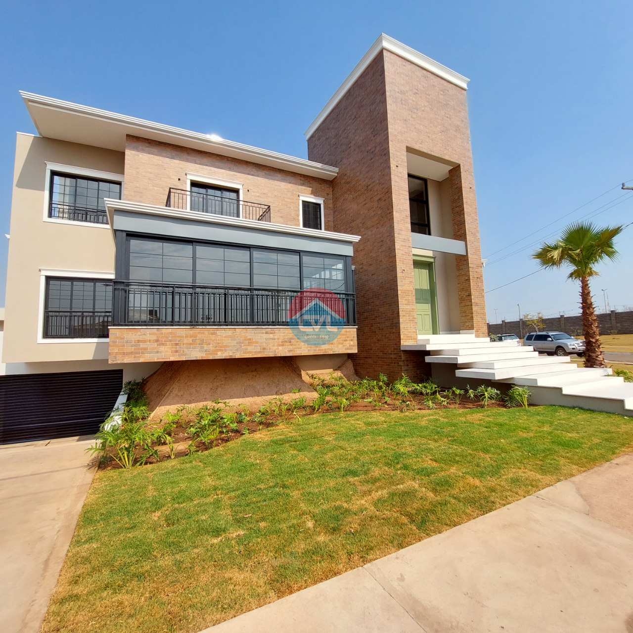 Casa de 780 m2 de área construída, em um terreno de esquina com 850 m2, com 3 pavimentos, 4 suítes sendo a master com closet e duas sacadas. Copa e espaço generoso para roupeiro no piso superior.