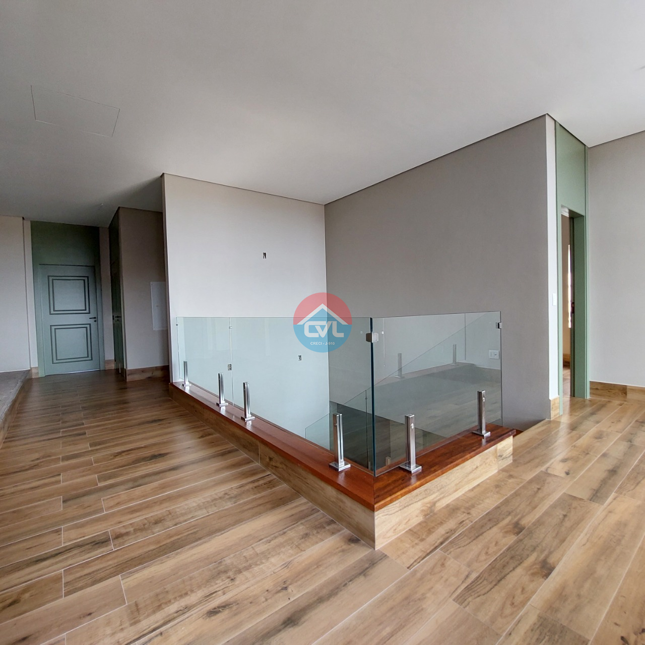 No piso térreo uma varanda em balanço, toda em vidro e com teto revestido em palhinha, living, sala de jantar, lavabo, escritório, uma suíte para hóspedes, sala de tv ampla, cozinha, despensa, mini lavanderia, espaço para louceiro, espaço gourmet, banheiro masculino e banheiro feminino, ambos com chuveiro, gazebo e espaço para hidromassagem.